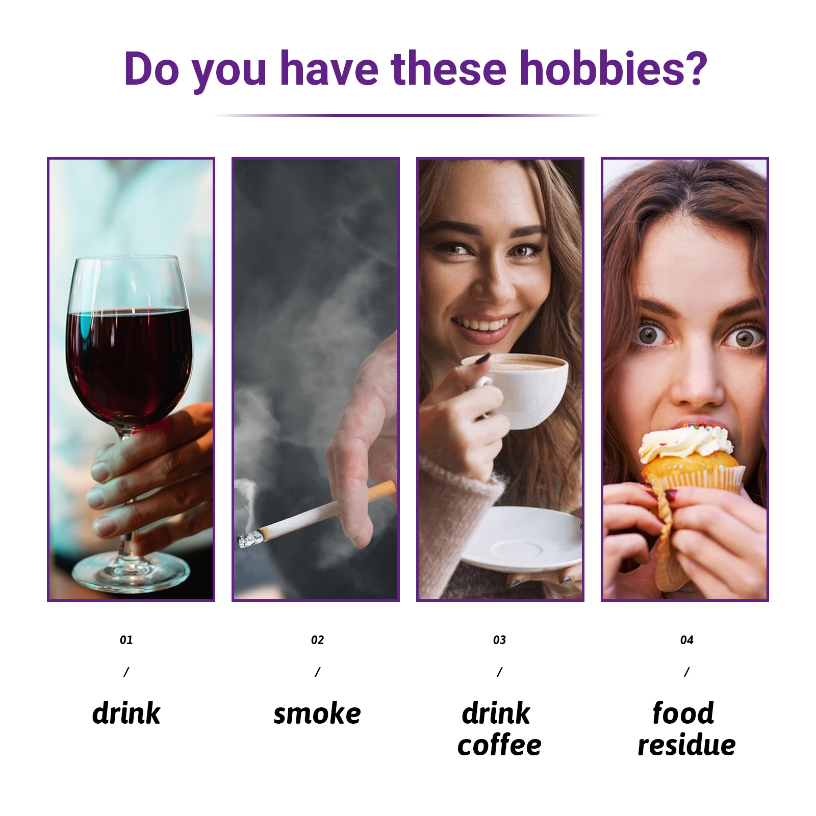 V34's advanced formula is designed to break down and lift surface stains caused by coffee, tea, wine, and smoking. With regular use, see visible whitening results for a naturally brighter, whiter smile that boosts your confidence.